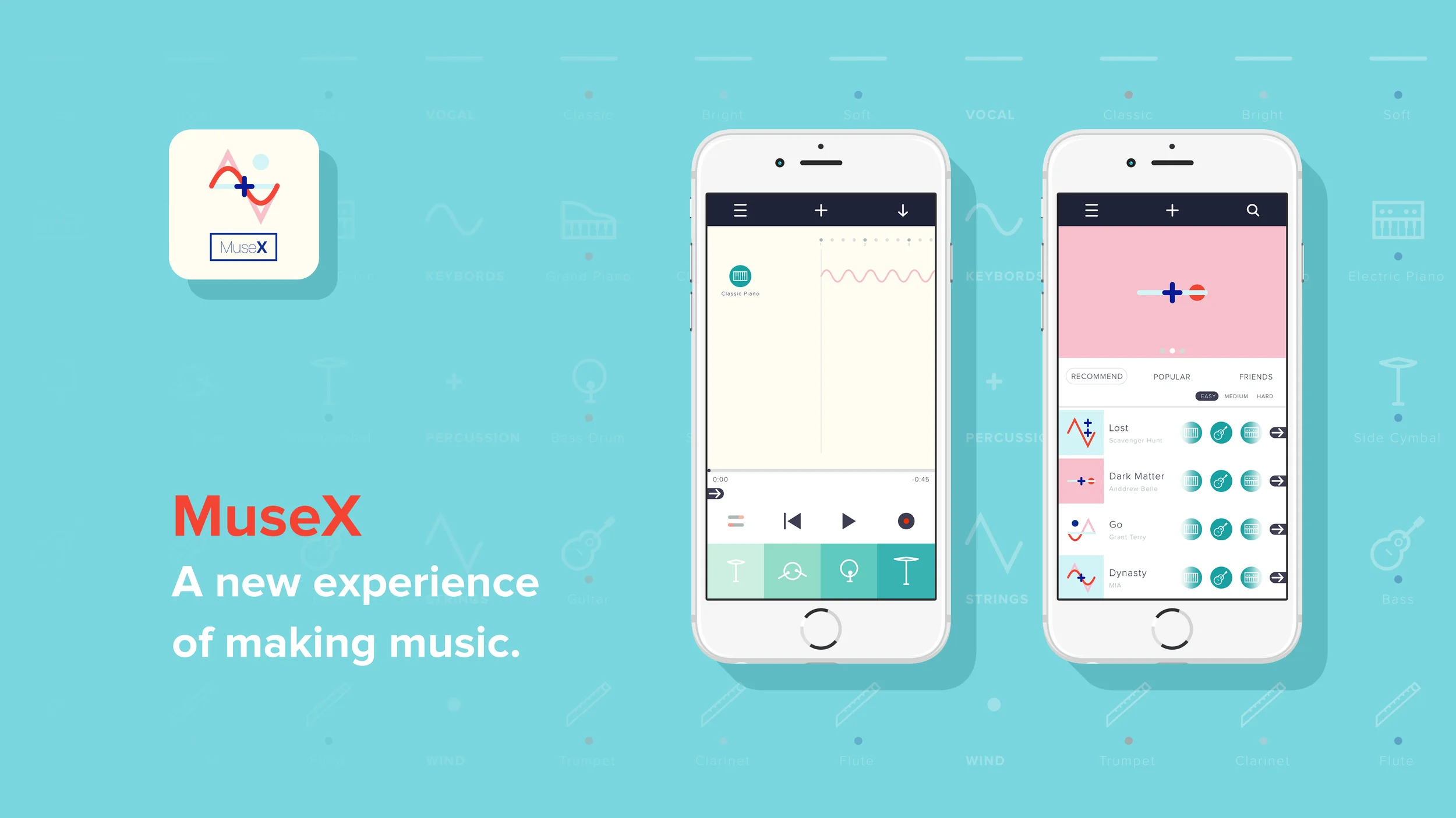MuseX is an app that uses our voice as an instrument to create layered musical tracks. It aims to be an integrated and immersive experience which combines music-listening and music-making. Users can record their own voice and convert it to different sounds of musical instruments.